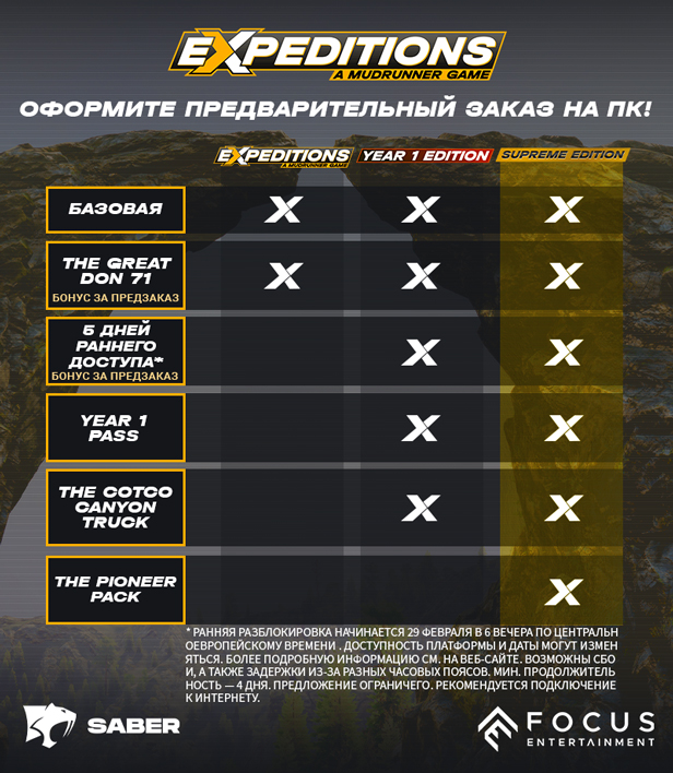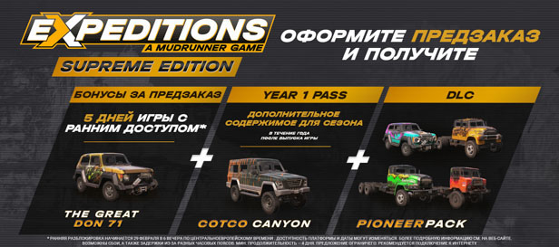 Оформите предзаказ на Supreme Edition of Expeditions: A MudRunner Game сейчас и получите доступ к игре за 5 дней до официального запуска!<br>
